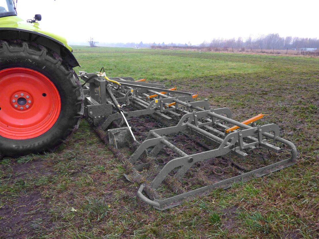 Maskinen består af to sektioner: Den forreste sektion er lavet af et støbejernstrukket net, som jævner engens overflade, fjerner muldvarpeskud, knuser dyreafgrøder og udfører en indledende luftning af jorden.